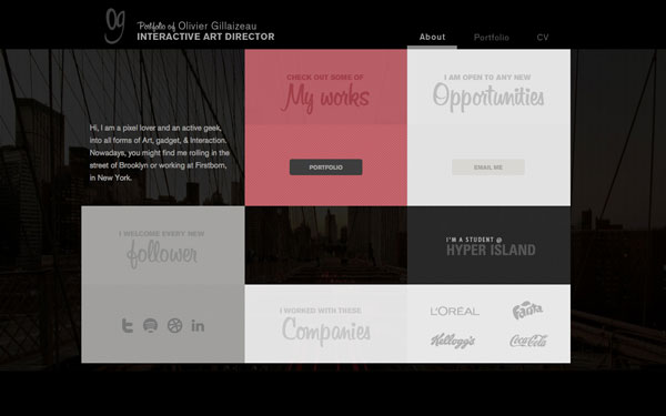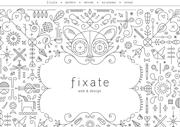 整個首頁采用黑色線條矢量圖組成一個密集式的豐富多彩的圖片,突出設(shè)計原創(chuàng)性。而字體也與此相稱,整個網(wǎng)站設(shè)計感很強(qiáng),還適當(dāng)裝飾了動畫效果,不失為上乘之作。