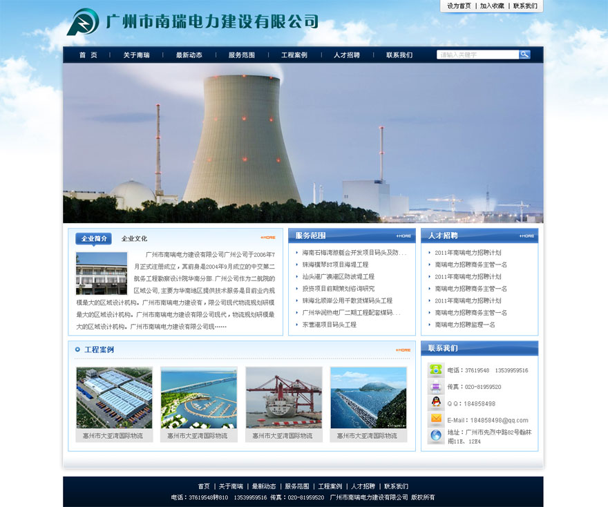 項(xiàng)目名稱:廣州南瑞電力建設(shè)有限公司網(wǎng)站建設(shè)簽定日期:2011年7月13日網(wǎng)站首頁(yè)設(shè)計(jì)稿:(縮略圖)...