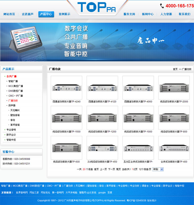 廣州市惠聲電子科技有限公司(TOPPA是廣州市惠聲電子科技有限公司在中國大陸地區(qū)合法注冊的品牌商標(biāo))成立于1997年占地面積18000平方米是一家致力于公共廣播、數(shù)字會議系統(tǒng)、專業(yè)音響、智能中控等設(shè)備的設(shè)計、生產(chǎn)、銷售、專業(yè)咨詢服務(wù)為一體的綜合性高科技企業(yè),總部座落在素有中國音響產(chǎn)業(yè)基地之稱的廣州番禺。產(chǎn)品廣泛應(yīng)用于:政府機(jī)關(guān)、學(xué)校、酒店、醫(yī)院、監(jiān)獄、辦公大樓、體育場館、超市、公園、旅游景點(diǎn)、步行街、廣場、車站、碼頭、工廠企業(yè)、超市、機(jī)場等各種場所。