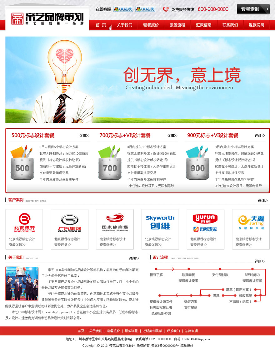 我們的優(yōu)勢(shì)和傳統(tǒng)設(shè)計(jì)公司相比,帝藝LOGO透明的設(shè)計(jì)流程和競(jìng)爭(zhēng)機(jī)制使我們的客戶在有限的預(yù)算內(nèi)獲得更多的 計(jì)選擇和專業(yè)的服務(wù)。 從團(tuán)隊(duì)建設(shè)到設(shè)計(jì)流程的搭建,帝藝LOGO都緊緊圍繞標(biāo)志/VI設(shè)計(jì)作為我們的核心業(yè)務(wù)。 您只需要填寫一份簡(jiǎn)單的標(biāo)志設(shè)計(jì)需求, 我們的設(shè)計(jì)師將在三天內(nèi)展示風(fēng)格各異的設(shè)計(jì)方案給您, 使您輕松擁有一個(gè)令您滿意的企業(yè)商標(biāo)標(biāo)志。