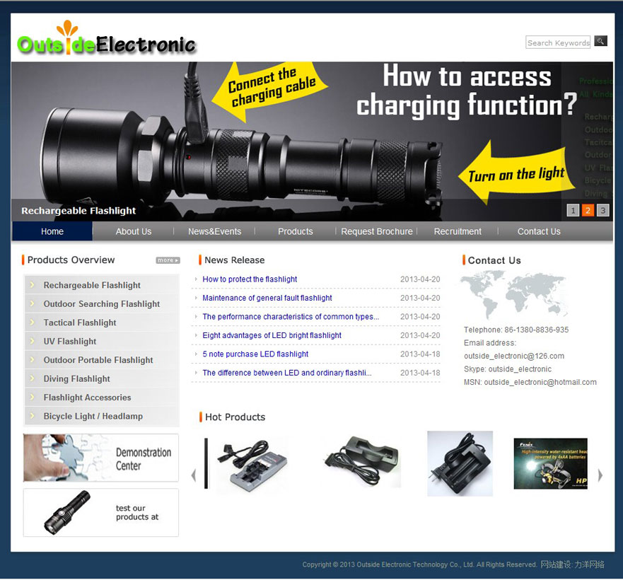 Outside Electronic Technology Co., Ltd. Mainly engages in LED lighting products, outdoor flashlight, explosion-proof lights, headlights, bicycle lights, overhead lighting lights and other outdoor lighting products, LED flashlight with water, riot control, performance, quality, LED flashlight. Outside Electronic will be your trusted corporation.