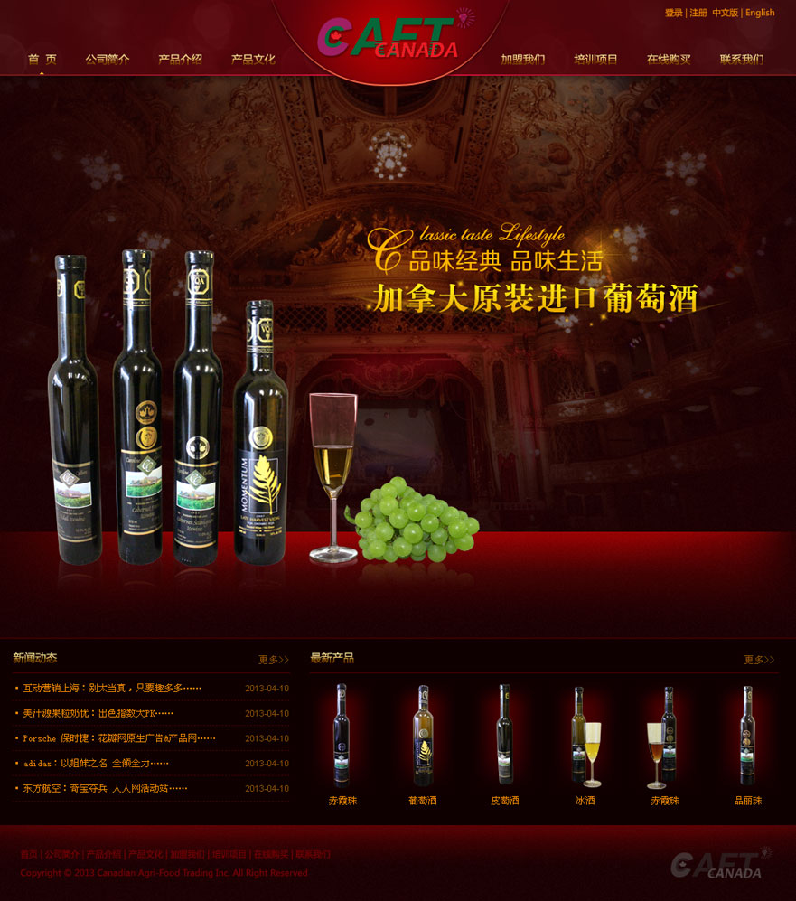 加拿大農(nóng)副產(chǎn)品貿(mào)易公司CAFT(Canadian Agri-Food Trading Inc.)成立于2013年,坐落于全球宜居城市-加拿大溫哥華。CAFT以食品安全至上,致力于為中國(guó)消費(fèi)者提供加拿大優(yōu)質(zhì)安全的農(nóng)副產(chǎn)品,主要經(jīng)營(yíng)的產(chǎn)品包括葡萄酒,面粉,蜂蜜,楓漿,牛奶,果干等100%加拿大原產(chǎn)農(nóng)副產(chǎn)品。