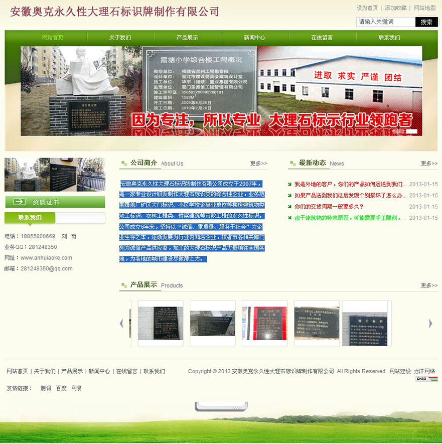 項目名稱:安徽奧克永久性大理石標(biāo)識牌制作有限公司網(wǎng)站建設(shè)