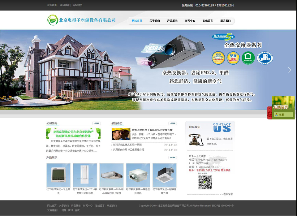 北京奧得圣致力于提供高效節(jié)能、舒適環(huán)保新風(fēng)系統(tǒng)系列產(chǎn)品及中央空調(diào)系統(tǒng)系列產(chǎn)品。室內(nèi)空氣污染已經(jīng)成為全世界各國共同關(guān)注的問題,被公認(rèn)為人類健康最危險(xiǎn)殺手之一。新風(fēng)換氣系統(tǒng),不僅能輕松應(yīng)對各種場所空氣污染問題,節(jié)能、環(huán)保等新技術(shù)的應(yīng)用更為用戶帶來高品質(zhì)的生活享受。
