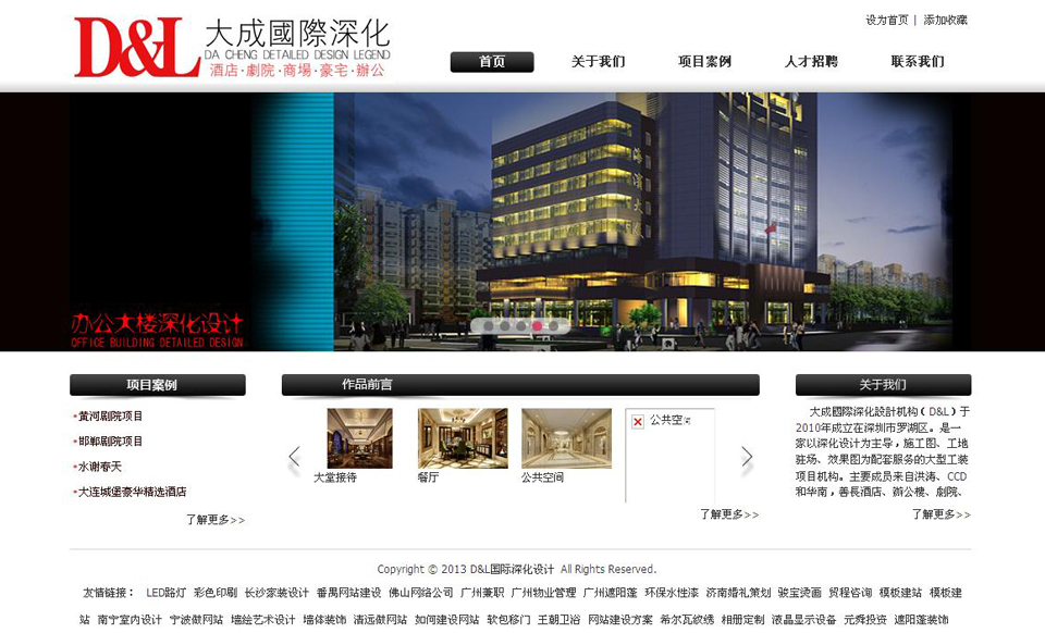 大成國際深化設(shè)計機(jī)構(gòu)(D&L)于2010年成立在深圳市羅湖區(qū)。是一家以深化設(shè)計為主導(dǎo),施工圖、工地駐場、效果圖為配套服務(wù)的大型工裝項(xiàng)目機(jī)構(gòu)。主要成員來自洪濤、CCD和華南,擅長酒店、辦公樓、劇院、商業(yè)空間等,她是一支技術(shù)熟練,經(jīng)驗(yàn)豐富的設(shè)計師團(tuán)隊(duì)。