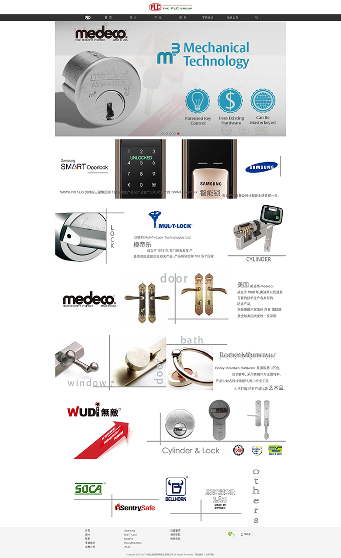 廣州紹倫鎖類照明商業(yè)有限公司"為香港PLC集團之附屬公司,負責(zé)中國國內(nèi)之防盜產(chǎn)品分銷工作,提供的產(chǎn)品有﹕Medeco美迪高門鎖、Mul-T-Lock模帝樂防盜門鎖、WuDi無敵鎖、Samsung三星電子鎖等。