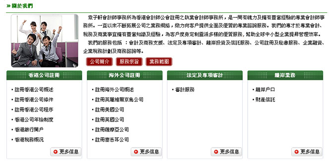 我們的服務(wù)包括 :會(huì)計(jì)及商務(wù)支援、法定及專項(xiàng)審計(jì)、離岸投資及信託服務(wù)、公司註冊(cè)及秘書服務(wù)、企業(yè)融資、企業(yè)稅務(wù)計(jì)劃及商務(wù)諮詢等。