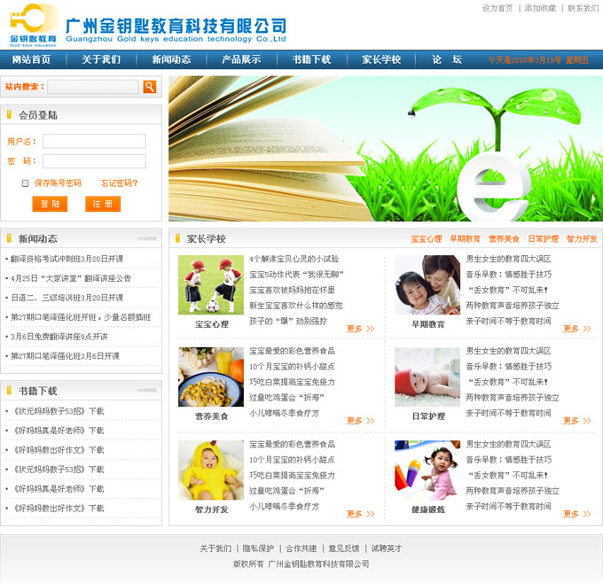 項(xiàng)目名稱:廣州金鑰匙教育科技有限公司網(wǎng)站建設(shè)簽定日期:2010年3月15日網(wǎng)站首頁設(shè)計(jì)效果:...