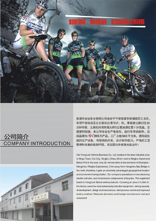 慈溪市永鉆車業(yè)有限公司地處于寧波慈溪市新浦鎮(zhèn)西工業(yè)區(qū),東鄰寧波機(jī)場(chǎng)北侖港60公里與瀘、杭、甬高速公路口僅30分鐘路程,北離杭州灣跨海大橋5公里地理位置十分優(yōu)越,交通便利快捷。本公司專業(yè)生產(chǎn)電動(dòng)車、自行車傳動(dòng)部件,注冊(cè)品牌為永鉆牌系列產(chǎn)品。工廠占地5800平方米,擁有最先進(jìn)的生產(chǎn)設(shè)備,有較強(qiáng)的開發(fā)、設(shè)計(jì)制作能力,嚴(yán)格的工藝管理和完善的檢測(cè)的手段。