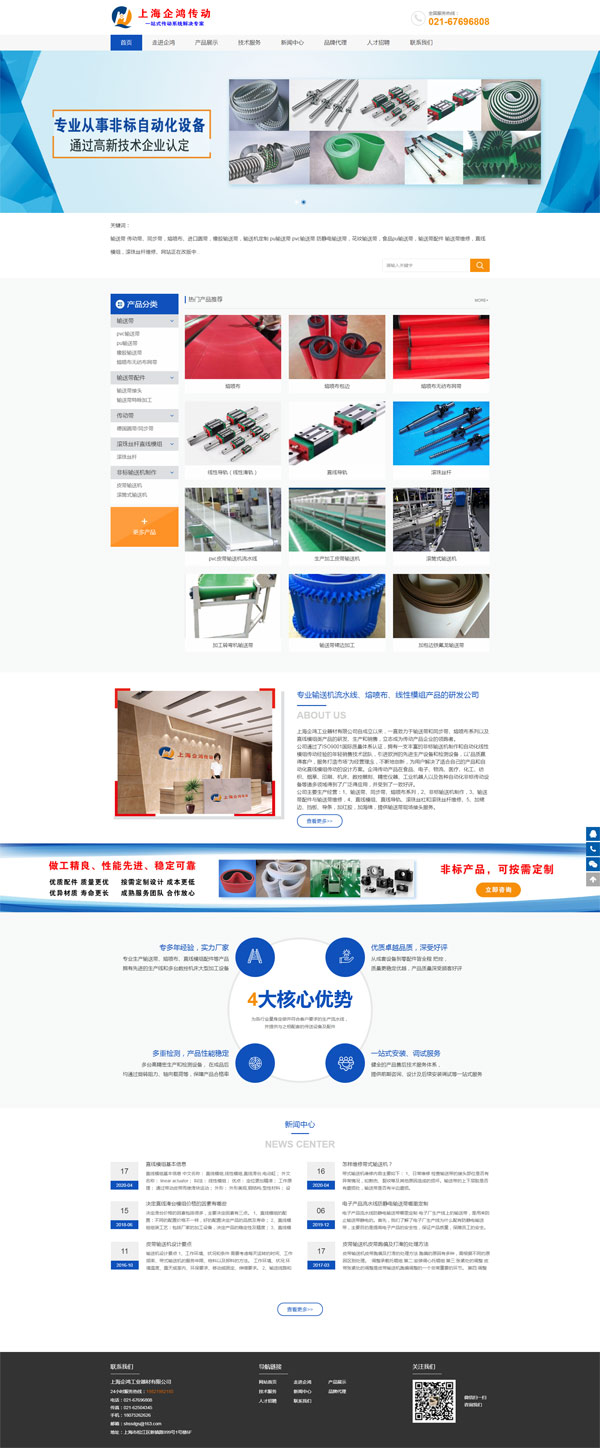 上海企鴻工業(yè)器材有限公司自成立以來,一直致力于輸送帶和同步帶、熔噴布系列以及直線傳動(dòng)類產(chǎn)品的研發(fā)、生產(chǎn)和銷售,立志成為傳動(dòng)產(chǎn)品企業(yè)的領(lǐng)跑者。