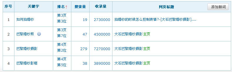 關(guān)鍵詞在百度排名數(shù)據(jù):(暫時(shí)只列出百度的排名數(shù)據(jù),其它搜索引擎的排名效果暫不列出)