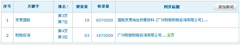 關(guān)鍵詞在百度排名數(shù)據(jù):(暫時只列出百度的排名數(shù)據(jù),其它搜索引擎的排名效果暫不列出)
