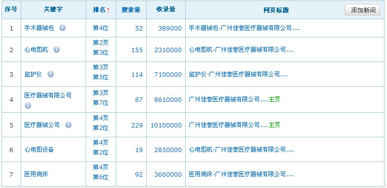 關(guān)鍵詞在百度排名數(shù)據(jù):(暫時只列出百度的排名數(shù)據(jù),其它搜索引擎的排名效果暫不列出)