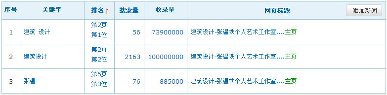 關(guān)鍵詞在百度排名數(shù)據(jù):(暫時只列出百度的排名數(shù)據(jù),其它搜索引擎的排名效果暫不列出)
