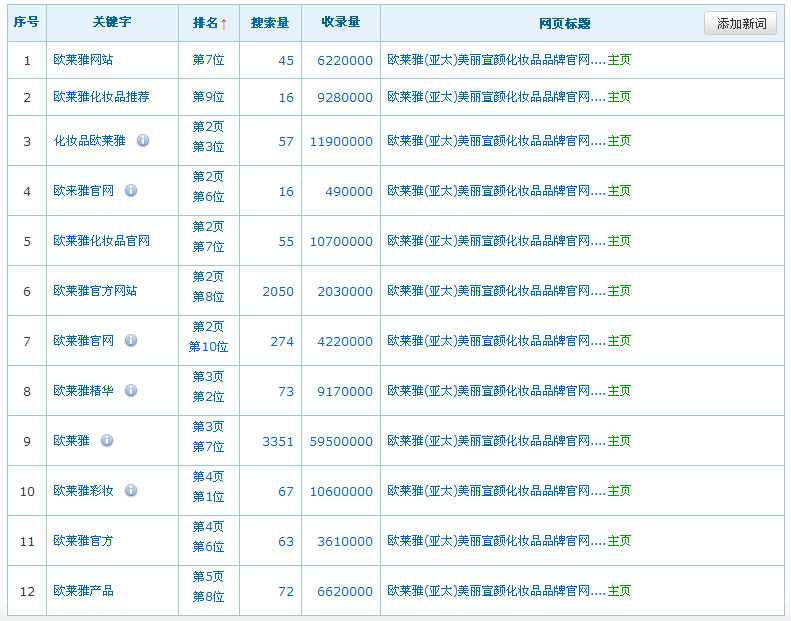 關鍵詞在百度排名數據:(暫時只列出百度的排名數據,其它搜索引擎的排名效果暫不列出)